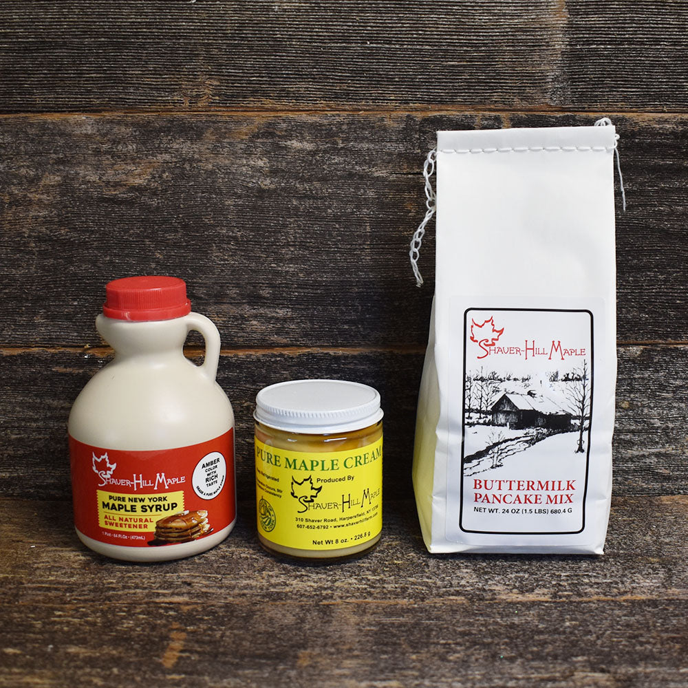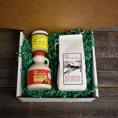 Everything they need for a weekend-worthy breakfast in one box. Flip buttermilk pancakes that cook up light and fluffy, top with our pure maple syrup, and add a spoon of silky maple cream for a warm, maple-caramel finish. It’s a gift that turns any morning into a small celebration—perfect for host gifts, holidays, and thank-yous.